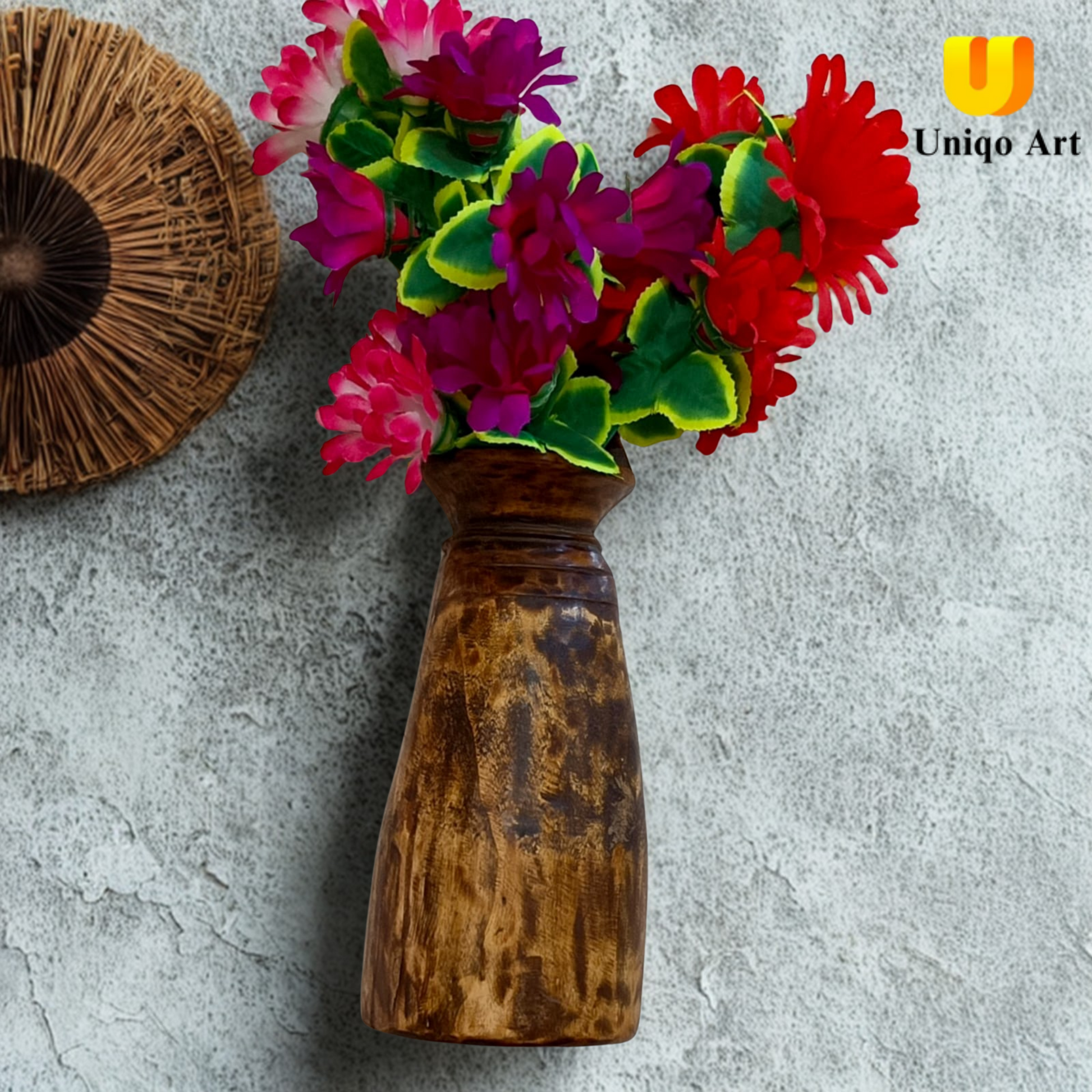 Add a rustic touch to your space with this handcrafted Wooden Flower Pot by Uniqo Art. Featuring a vibrant artificial sunflower bouquet and a natural wood finish, it’s a perfect blend of timeless charm and eco-conscious design.
