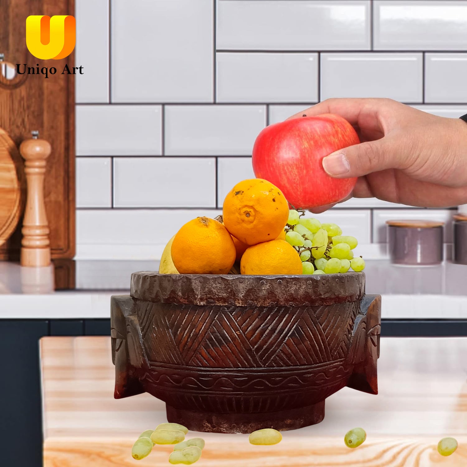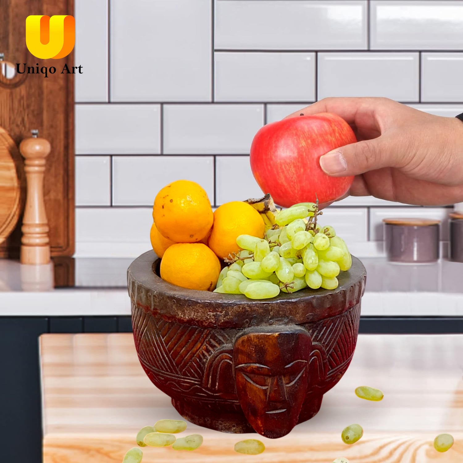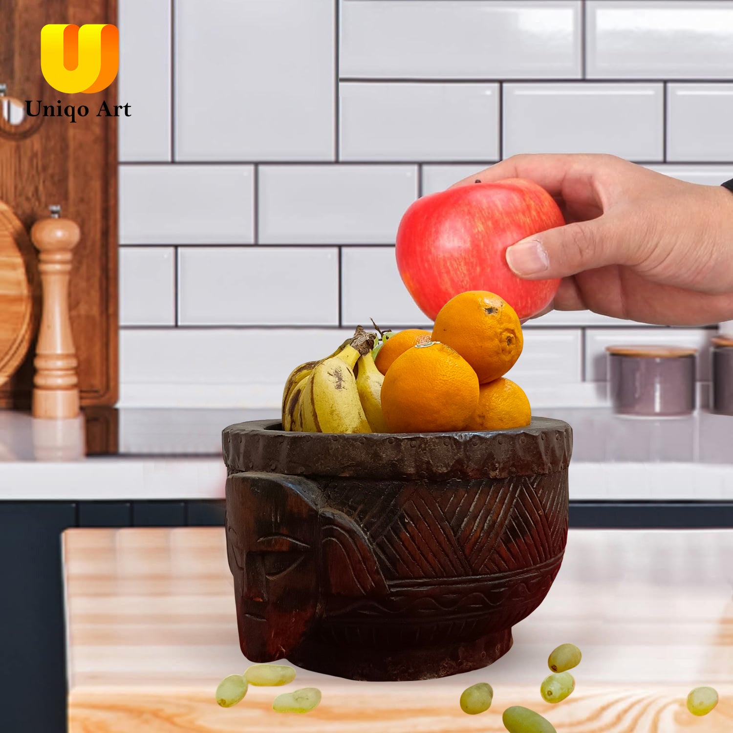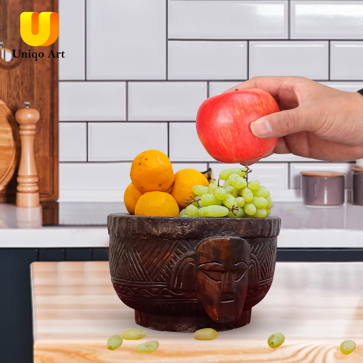 Uniqo Art Handicraft wooden Tribal Carved Naga Bowl, Ao Naga Tribal Bowl, Vintage Tribal Kitchen Vessel, Hand-Carved Folk Naga Kitchen Bowl, Handcarved Indian Bowl.
